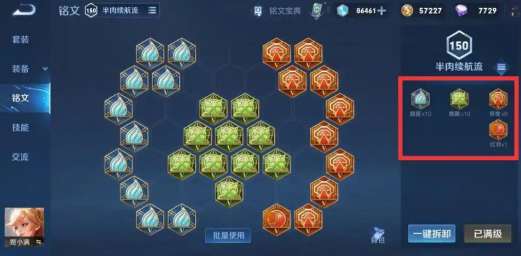 铭文方面推荐使用十枚异变、十枚鹰眼和十枚隐匿,这套组合能提供物理攻击、物理穿透和移动速度加成,让姬小满在前期对线时更具压制力,技能衔接更流畅。异变铭文增加物理攻击和穿透效果,帮助她在对抗敌人时更易打出高伤害。鹰眼铭文进一步增强穿透能力,而隐匿则提升移速和普攻衔接,这对于刺客型英雄来说非常关键,能让她快速追击或撤离战场。
