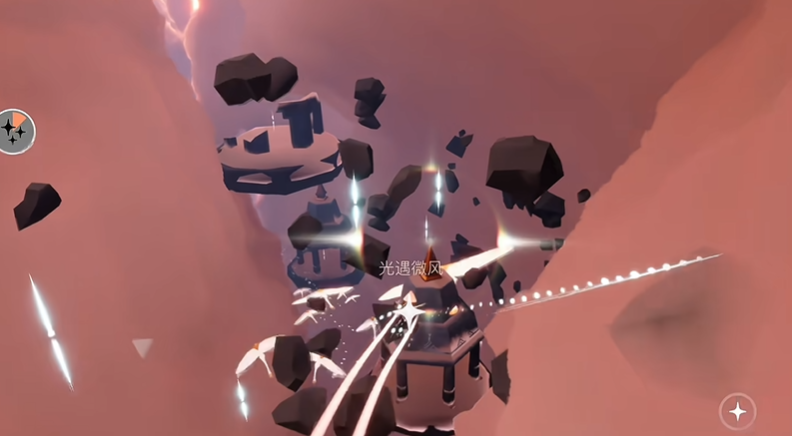 找完溜冰场这几个,就该去两个赛道里瞧瞧了,无论是飞行赛道还是滑行赛道,里面都藏着好几个小金人。进飞行赛道飞到霞光城,那左右对称的建筑上头,高的尖塔里,矮的亭子中,都可能挂着光之翼。滑行赛道也一样,滑到中后段,留心看看两边的小平台,有个小家伙就大剌剌地站在那儿。等冲过终点,到了落日竞技场那个大圆盘,先别急着进神庙,把视角转向神庙入口的左上方,飞到那些雕像附近看看,往往有惊喜。这些地方光靠脚走可能不好上去,得多用用飞行和滑翔的技巧。