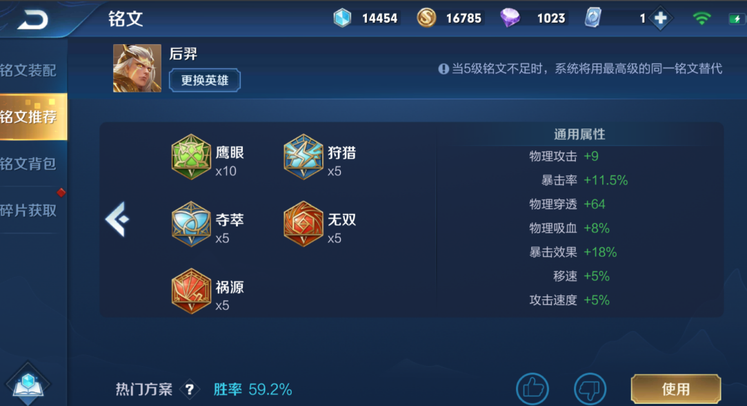 如果敌方有高回复英雄,泣血之刃可以换成制裁之刃,虽然会牺牲一些吸血效率,但能有效克制对手的回血能力。推荐搭配红色铭文如无双或祸源来提升暴击收益,蓝色铭文选择夺萃增强物理吸血,保证前期续航,绿色铭文则用鹰眼来增加物理穿透,这样打坦克和脆皮都会更疼。好的铭文能弥补装备的不足,比如如果你出了不带吸血的装备,夺萃铭文就能帮你保持线上活跃。如果追求更平衡的属性,也可以混搭狩猎来增加移速和攻速,让后羿的走位和输出更流畅。