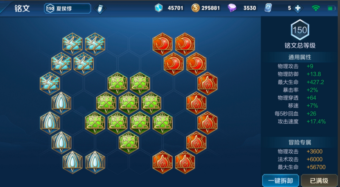 铭文配法是红色带十个宿命,蓝色带十个调和,绿色带十个虚空或者鹰眼。宿命能加生命、物理防御还有一点点攻速,调和也是加生命和回血,还能加点移速方便跑图支援。如果你更偏向让夏侯惇能抗得更扎实,绿色就选虚空,它能进一步加生命和冷却缩减;要是你觉得队伍里缺那么点伤害,想让夏侯惇的普攻打人更疼点,绿色也可以考虑带鹰眼,加点物理攻击和穿透。
