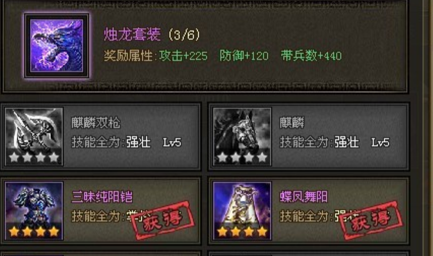 除了首选的朱雀套装,烛龙套装或其升级版真烛龙套装也是值得考虑的备选方案。烛龙套装在提供不错战法输出的同时,还兼顾了一定的物理防御和战法防御能力,让太史慈在保证输出的情况下生存能力有所提升。而真烛龙套装作为进阶选择,属性更为全面,在保留战法输出能力的基础上,额外增加了大量攻击、防御和血量,使得太史慈在面对高难度挑战时持续作战能力更强,适用场景也更广泛。