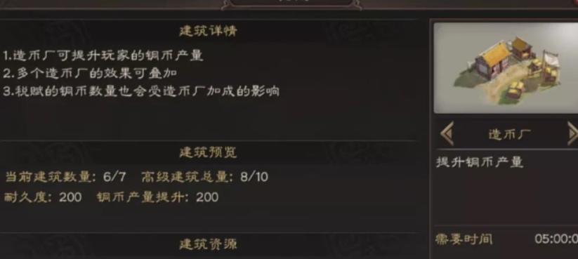 铜矿本身还牵连着另一个重要的玩法,那就是建造造币厂。当你占领了六级或更高级的铜矿后,就可以选择在上面建造造币厂。这个造币厂是可以升级的,等级越高,每小时产的铜币就越多,比单纯铜矿的产出要高不少。但是这里有个关键点要注意,一旦造了造币厂,原来铜矿本身的产量加成就被覆盖掉了,你得到的就完全是造币厂等级对应的产量。要不要在铜矿上造币厂,以及什么时候造,需要你根据自己的资源情况和战略规划来权衡。有些玩家会选择把造币厂建在其他资源地上,而把铜矿留着纯粹收矿,这也是一个常见的思路。