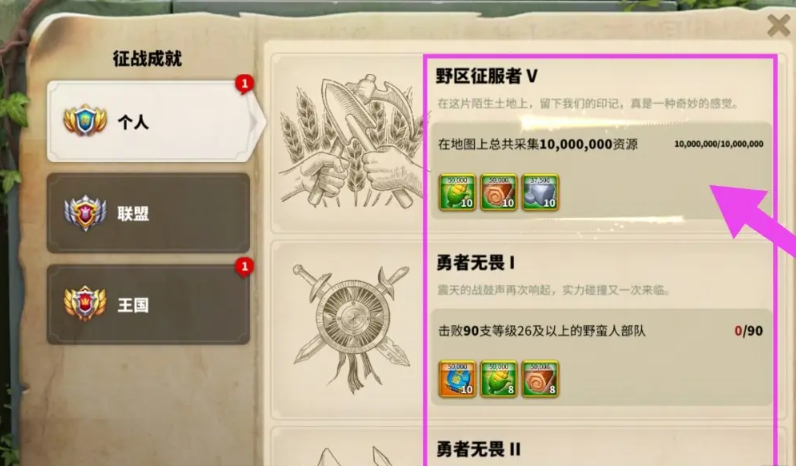 征战成就可以说是提升你个人实力和给王国做贡献的一个好东西,它积累的不仅仅是荣誉点,更是实打实的资源和发展机会。你想多拿这些分,核心思路就是积极参与游戏里各种和战斗、争夺有关的玩法,别当个纯粹的农民。从你刚进入王国开始,野外地图上那些野蛮人、野蛮人城寨和山洞就是你的第一个目标,经常派兵去清剿它们,不仅能完成像野区征服者这类个人成就,还能拿到经验和资源,算是一举两得的好事。