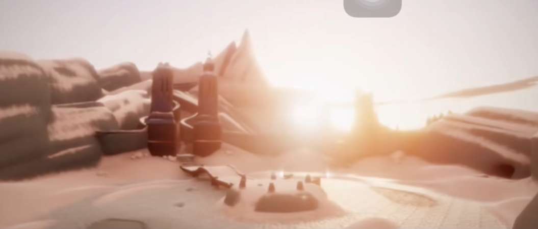 滑行之旅的终点是一座非常壮观的落日竞技场,当你冲过终点线,滑行的旅程就基本结束了。竞技场中央有一座环形大门,这是通往下一段冒险的关键。不过这个门通常需要你和其他小伙伴合作,一起用手中的心火点亮机关才能打开,所以如果是独自前来,可能需要等等其他人或者呼朋引伴一起来玩。进入大门后,里面是个很开阔的社交区域,有长椅可以休息,也可以看看风景,算是给这段紧张刺激的滑行一个完美的收尾。