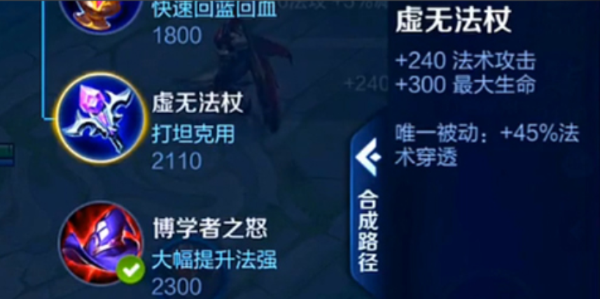 在出了上述核心装备后,出装会根据局势走向进行选择。一种常见的暴力输出路线是补充博学者之怒来极大提升法术强度,让伤害产生质变。之后可以出巫术法杖,它的被动强击效果能完美契合司马懿技能接普攻的输出模式,让每一次强化普攻的伤害更加致命。最后一件装备通常需要根据战场情况灵活选择,虚无法杖用来应对敌方堆叠了较高法术防御的情况;辉月则是一件关键的保命装,可以在进场输出后开启免疫所有伤害,帮助躲避关键技能或等待技能冷却。