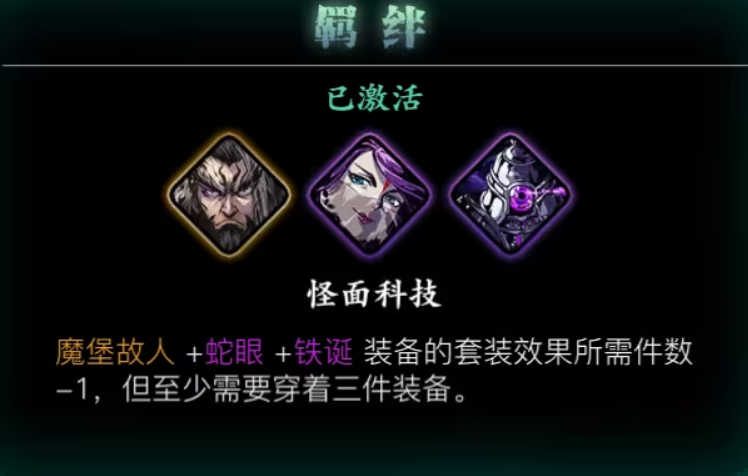 在构建完整心法体系时,还需要考虑心法之间的羁绊联动。经典的光与暗羁绊,即同时装备黑暗无情和白衣留情,能带来高额的伤害增幅,虽然会承受更多伤害,但对于追求极限输出的玩法是不错的选择。而由魔堡故人、蛇眼等心法构成的怪面科技羁绊,可以减少装备套装的需求件数,为你腾出更多装备搭配空间来追求其他属性,这对于需要兼顾套装效果的后期搭配非常实用。