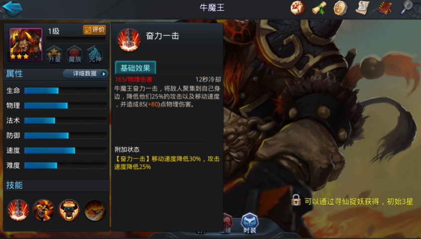 地藏菩萨是个超级能扛的肉盾英雄,对于新手来说简直是福音,一星状态下就有1600的生命值和660的双抗属性,比起其他角色来说基础优势很明显。他的技能除了梵音破带点法术伤害和嘲讽效果外,其他两个技能都是辅助型的,比如善恶定业能反弹伤害和治疗,众生度尽可以增加生命上限并帮队友分担伤害,这样在战斗中能大大减轻队友的压力,自己还特别耐打。