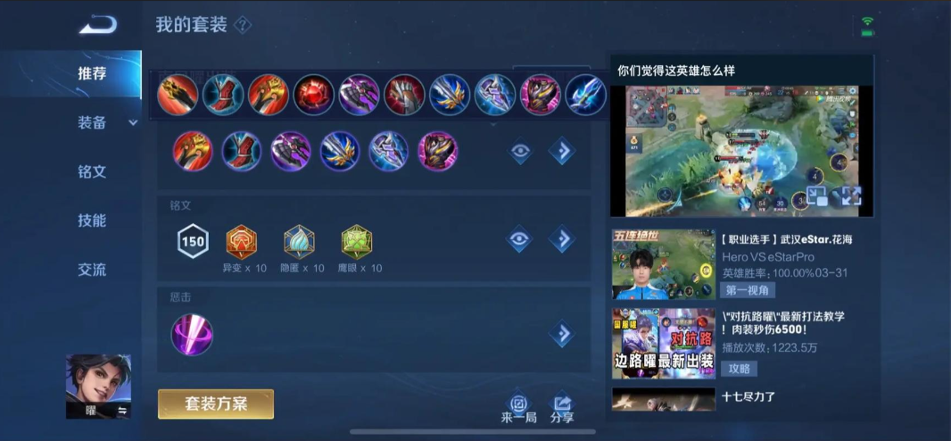 铭文搭配对于增强曜的吸血效果至关重要,推荐使用标准的百穿铭文组合。红色异变、蓝色隐匿和绿色鹰眼各10个,这提供了高额物理穿透、攻击力和移速,进而优化技能伤害和机动性。这套铭文与吸血出装相辅相成,能有效提升曜的前期作战能力和持久性,让他更容易在消耗战中占据上风。