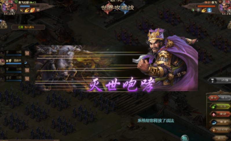 觉醒成功后,张飞的战斗力将实现质的飞跃,其技能效果发生显著变化。最核心的改变是其战法由震天咆哮升级为灭世咆哮。新战法可以对敌方三排部队造成伤害,并且能将敌方最后50个部队吼退一个城池,这项效果无视司马懿的反弹战法,但对守城曹仁及聚力幻影无效。觉醒同时还强化了他的主动与被动技能,大幅提升攻击力、防御力以及在生命值临界时的恢复能力。外观上,觉醒后的张飞会身着紫色战袍,形象更具威严。