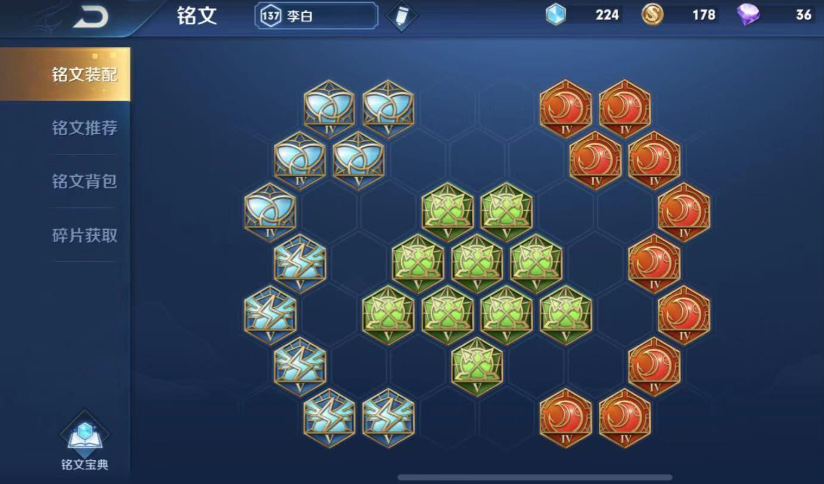 最经典和强力的选择是百穿组合,即红色异变、绿色鹰眼,再搭配蓝色狩猎和夺萃。这套铭文提供了高额的物理攻击和物理穿透,确保李白在前中期就能打出可观的伤害。狩猎铭文增加的攻击速度和移动速度,能让李白刷野、支援和走位都更加流畅;而夺萃铭文提供的物理吸血,则与出装中的泣血之刃形成互补,进一步强化了前期的续航能力,使得李白在野区发育和遭遇战时更加从容。如果想追求极致的攻击力,也可以将部分夺萃替换为隐匿。