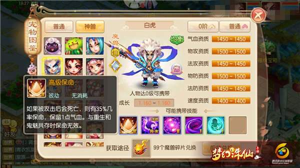 白虎的资质分布决定了其物理专精定位,物攻与物防资质均为1500,但法防与速度资质相对平庸。加点推荐采用9力1耐或全力方案,前者兼顾生存与输出,后者则追求极限伤害。需注意白虎的主动技能对血量有硬性要求,若气血低于30%则无法释放血性狂暴,因此重生技能比保命更适合作为生存保障,避免因低血量限制输出能力。吸血技能可配合物理伤害特性提供续航,但连击、追击等普攻触发类技能因与技能机制冲突而不建议选用。