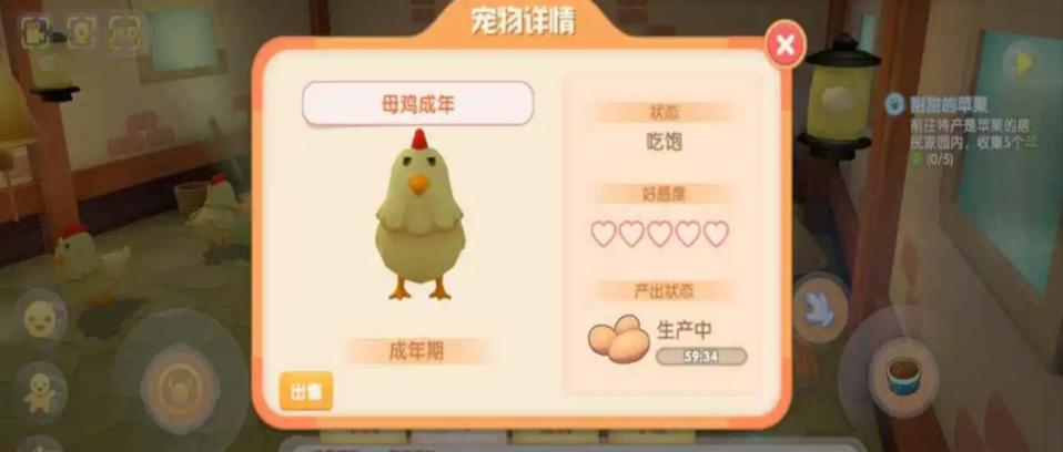 养小鸡的乐趣在于观察它们摇摇晃晃散步的样子,但别让它们在外面待太久。白天放风几小时就摇铃叫回来,晚上坚决不让它们出门。遇到特殊情况比如任务卡住,试试退出游戏重新登录,或者找汤米检查禽舍是否建造完整。只要按时喂食、定期刷毛、合理控制外出时间,你的小鸡一定会健康快乐地成长。最后禽舍最多只能养四只小鸡,多出来的会暂时存放在仓库。想换新小鸡的话,成年母鸡可以卖给尤尤,但一定要在售卖期操作,否则会影响收益。