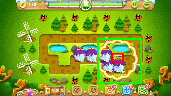 进入游戏中期后,重点是利用炮塔快速清理地图上的道具。当中间的水池被清除后,你会获得两个瓶子炮塔,应该立即将它们升到满级,并集中火力攻击上下两组大松树。打掉大松树后会解锁隐藏的魔法球塔,这种炮塔的伤害很高,要优先升级它们。瓶子炮塔和魔法球塔应该负责清除第三颗大松树,确保在120秒内完成任务。在这个过程中要特别注意控制太阳花塔的数量,千万不要超过6个的限制。清除左右两侧的大松树后各会出现4个便便塔,从中选择2个升级到顶级来完成额外任务。左右两边的障碍物被清理后可能会得到便便塔,但要注意这些塔的减速效果一般,不如换成其他高输出炮塔。