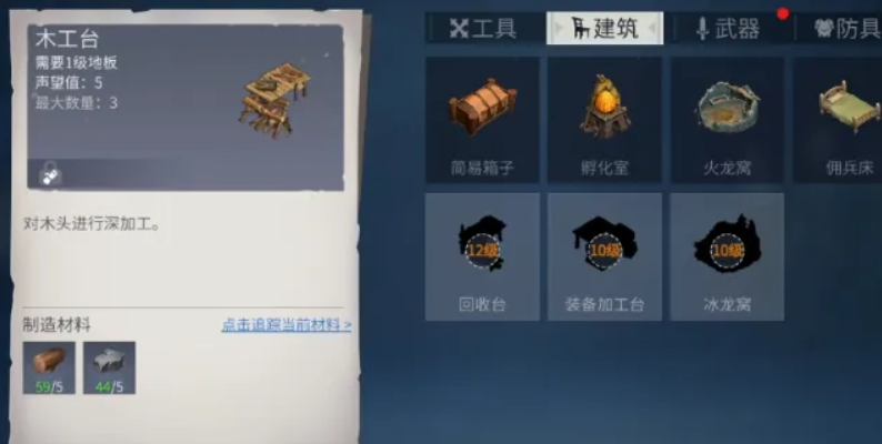 提升工作台等级是游戏中的重要环节,工作台等级与工匠等级直接相关,最高可达到六十级防具和七十级武器,升级工作台需要你制作工艺品并积累经验,通过反复制作装备来逐步提升等级,从而解锁更强大的制造能力。在使用工作台时,建议优先制作消耗资源较少的装备来刷熟练度,比如手套就是不错的选择,因为材料需求低且能稳定增加经验值。