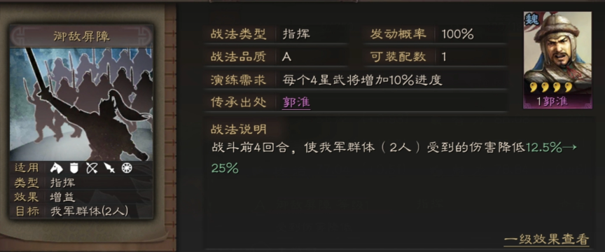 除了上述常见搭配,一些具有特殊功能的A级战法也能在特定阵容中发挥奇效。例如盛气凌敌,这个战法在前两回合有概率使敌军两人陷入缴械状态,对于以刘备为主将、依赖普攻的菜刀队有极强的克制作用,能与我方关羽、张飞等武将形成良好的战术配合。再如出其不意,这是一个需要准备但能随机对敌军施加计穷或缴械的强力控制战法,虽然发动稳定性不如指挥战法,但一旦成功便能有效打断对手节奏,为刘备的队伍创造优势。