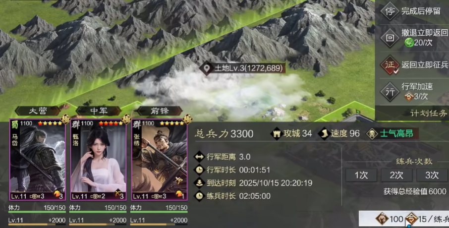 武将升级可不能光靠埋头打架,得学会利用游戏里的各种功能。等你慢慢发展,名望值攒到4000这个大关,一个叫练兵的功能就对你敞开了大门,这可以说是中期以后武将升级的稳定加油站。练兵需要消耗政令和武将体力,把部队派到自己占领的高级资源地上就能进行,土地等级越高,单次练兵获得的经验量就越夸张,据说九级地一次能给几十万经验。这里有个小窍门,练兵获得的经验是部队里所有武将平分的,所以如果你想集中火力培养某一个核心武将,最好是让他单独组一支部队去练兵,这样所有经验他一个人全吃,升级效率直接拉满。练兵最大的好处是几乎零损耗,不用损兵折将,特别适合用来培养那些比较脆皮或者你舍不得拿去撞地的高级武将。